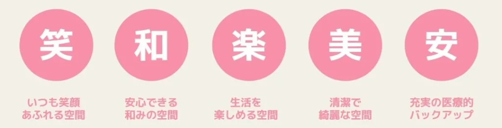 わ「笑・和」・ら「楽」・う「美」をスローガンに職員一同入居者様と真摯に向き合っています。